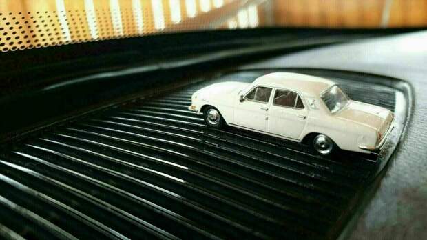 У нас вторая версия 24-ой Волги, так как на ней уже появились клыки, на задних дефлекторах ещё нет габаритных огней, а рельеф поворотников выполнен в виде кружков. Кузов под стать многим американским автомобилям. Это не значит, что советские инженеры что-то подсмотрели. Просто была моды на широкие машины.